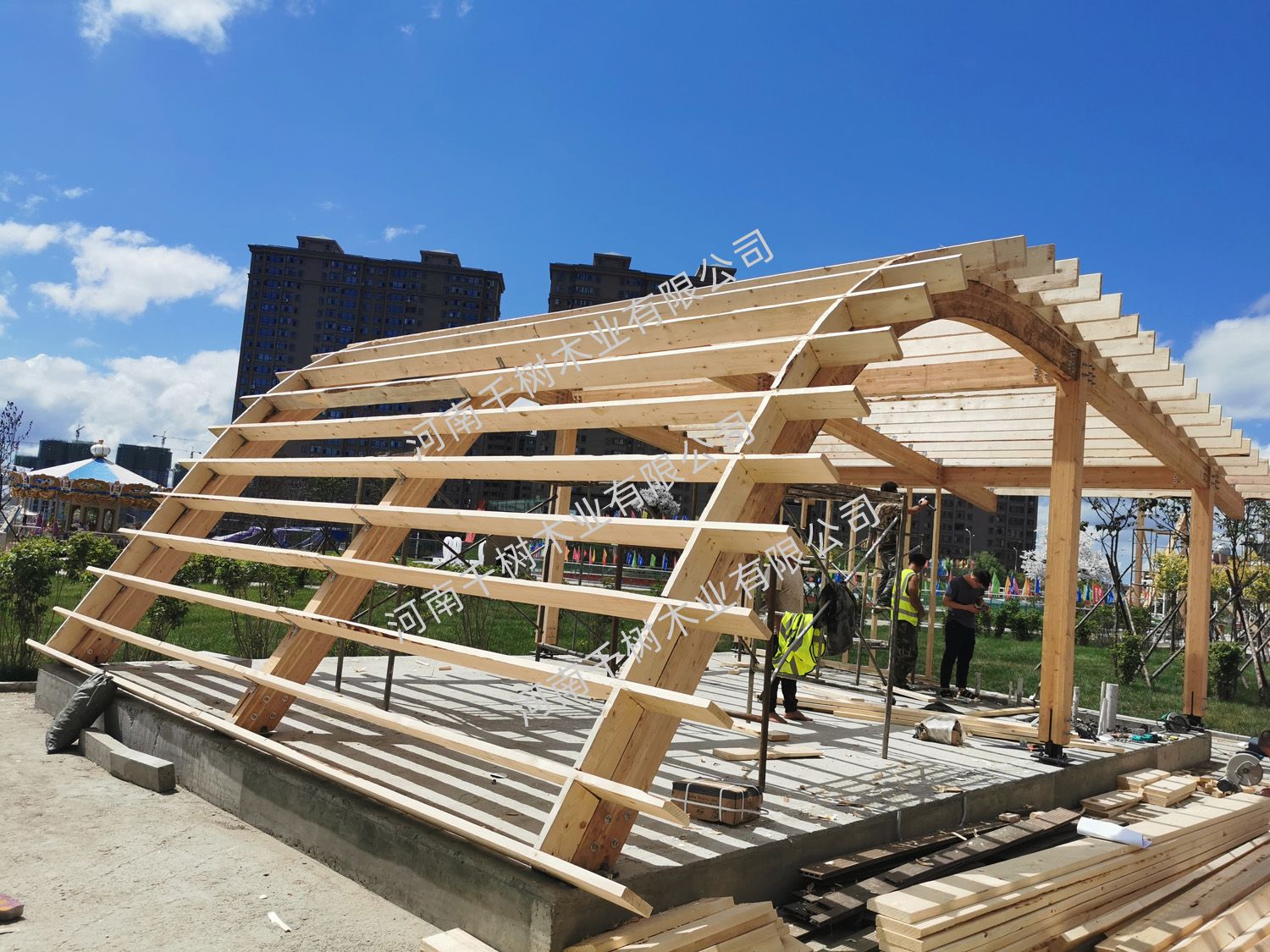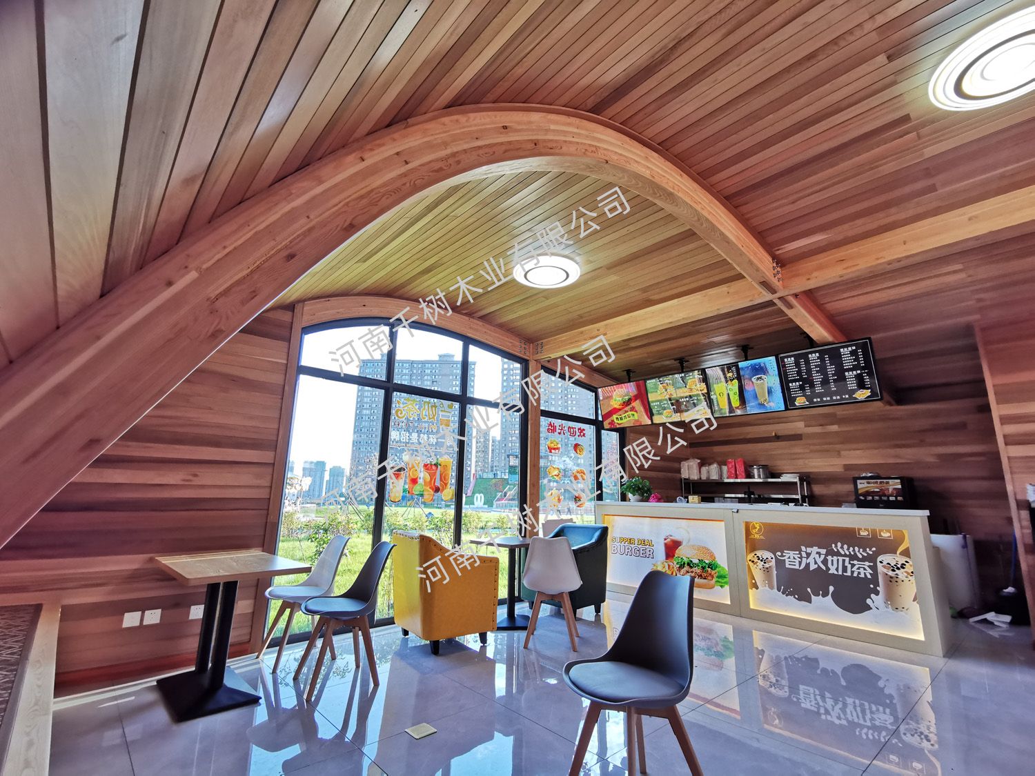 項(xiàng)目介紹:木屋定制。采用紅雪松無節(jié)外飾面