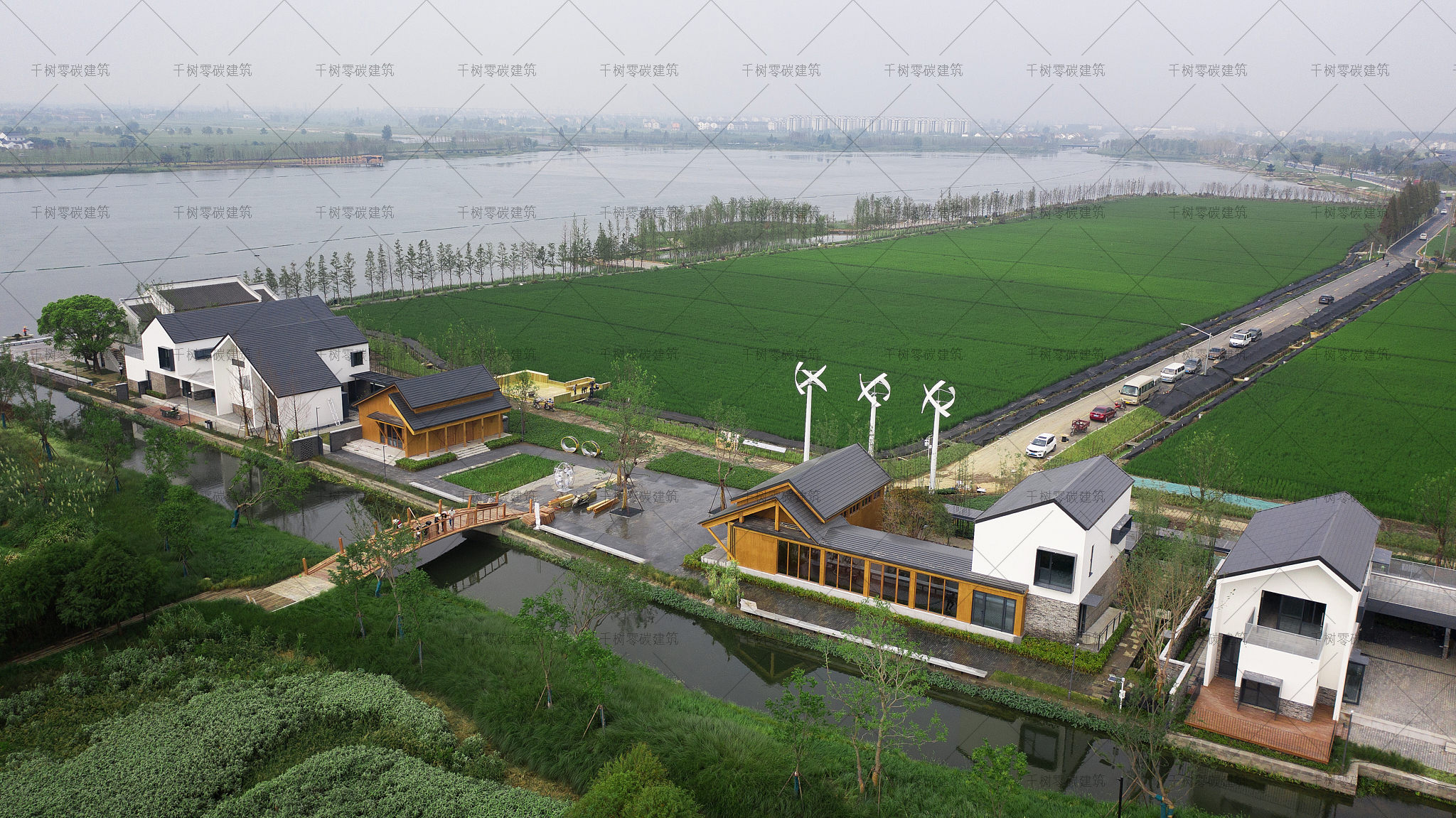 竹小匯科創(chuàng)聚落是全國首個零碳聚落樣板示范點,其中辦公組團一、辦公組團二、辦公組團三、辦公組團四、辦公組團五和訪問樓為超低能耗建筑、報告廳木屋為實時零碳建筑;展示中心木屋為全生命周期零碳建筑。