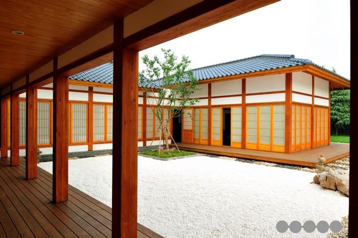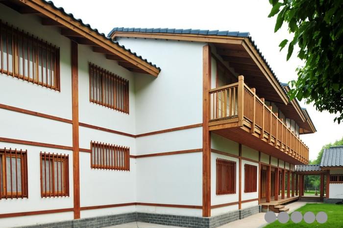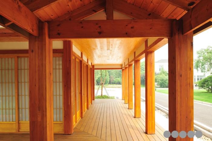 這是一座會所性建筑,一樓有接待門廳、保安室、會議室、會客大廳、酒吧視聽室、棋牌室、獨立車庫等。本案設(shè)計建造者十分感慨的一點是,日本建筑業(yè)在堅持傳統(tǒng)的基礎(chǔ)上大量吸引現(xiàn)代歐美的木建筑概念,包括結(jié)構(gòu)和節(jié)點方式,新的材料工業(yè)進步以及建筑的節(jié)能保溫方法等,使得傳統(tǒng)的日式建筑得以在充實革新后,不斷發(fā)展,仍然可以滿足今天人們的生活居住要求。從中可以給眾多致力于繼承和發(fā)揚中國自身建筑傳統(tǒng)的專業(yè)人士啟示。