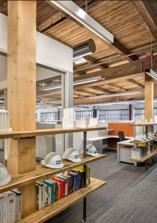 這是位于波特蘭市中心西端的SW 12th & Alder的Culver Building改造項(xiàng)目。在四分之一街區(qū)的地塊中,GDB建筑設(shè)計(jì)公司設(shè)計(jì)了在1920年的一幢20000平方英尺的二層建筑之上的加減部分,加建面積6000平方英尺,立面以玻璃和鋁為主。建筑保留了原有的基礎(chǔ)、現(xiàn)澆混凝土外墻、木屋頂結(jié)構(gòu),以及大部分的木梁柱。