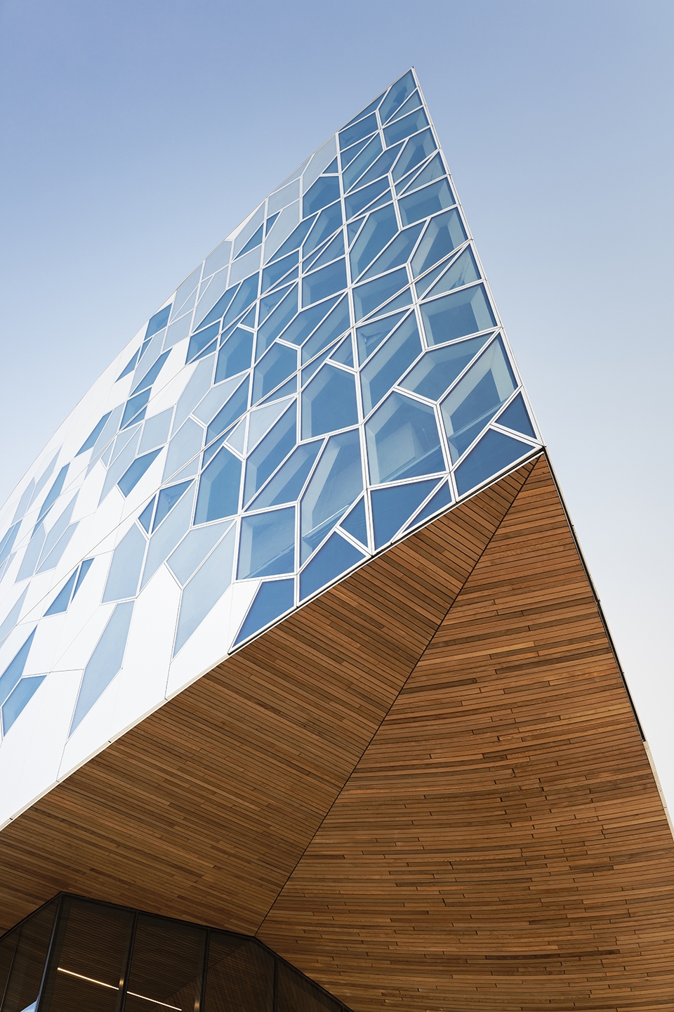 ▼三層玻璃幕墻由模塊化的六邊形圖案組成
