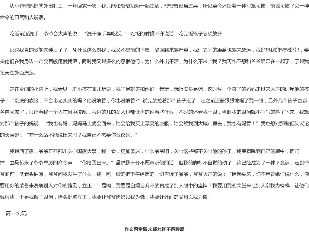 點(diǎn)評(píng):親情、親人,這些都讓我們的生命變得珍貴,變得美好,小作者用自己的文字為我們描述了...